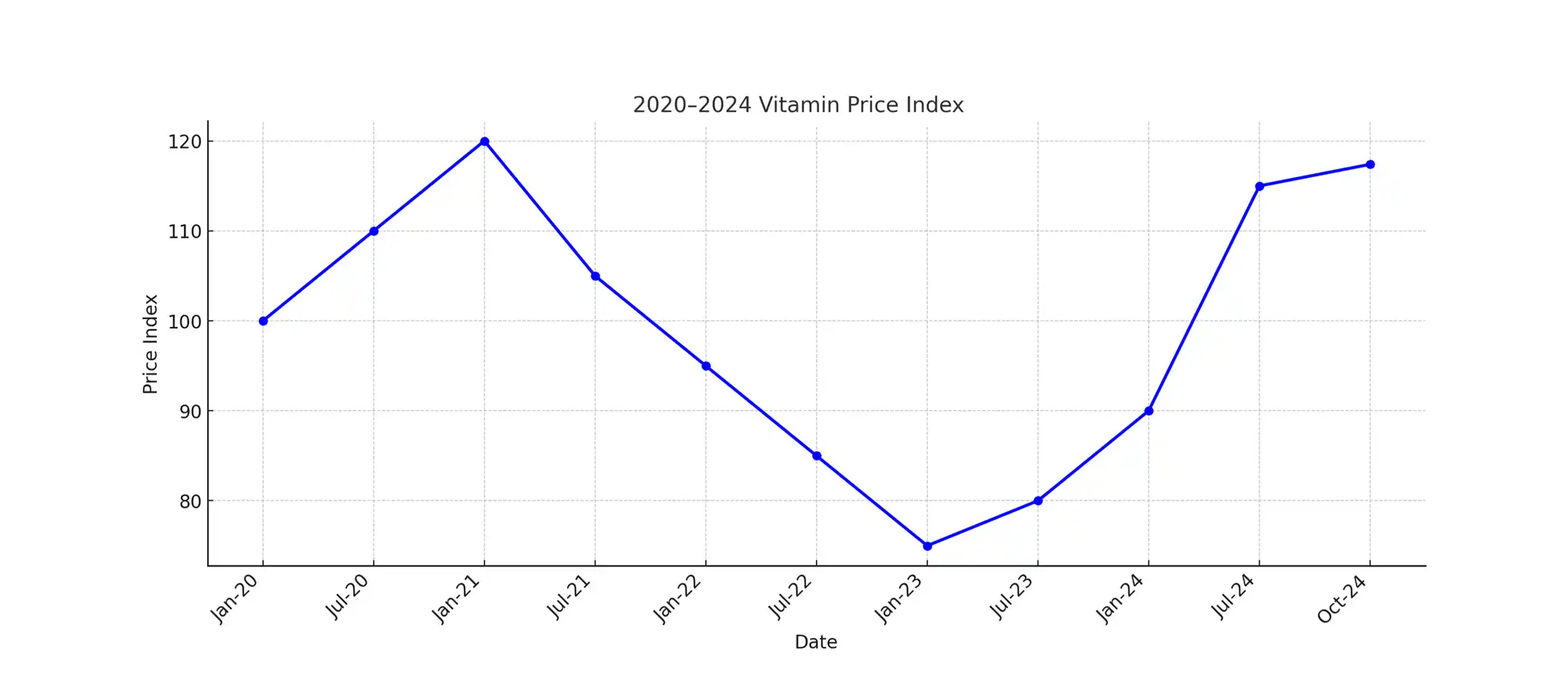 شاخص قیمت ویتامین های خالص از سال ۲۰۲۰ تا ۲۰۲۴